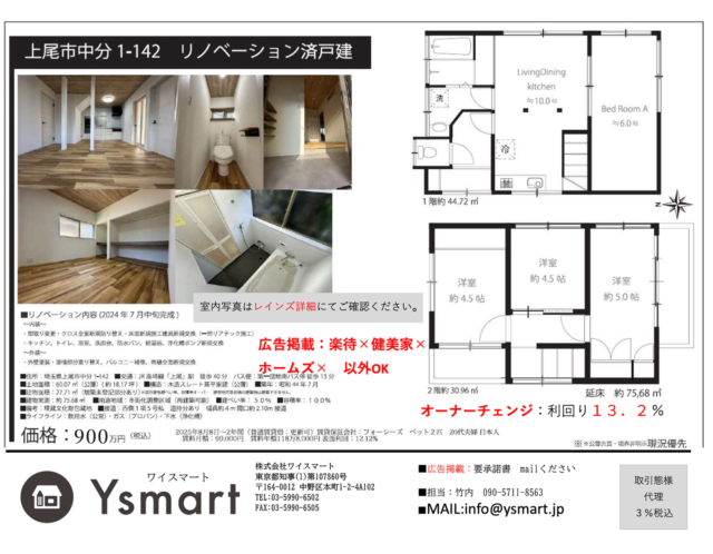 お知らせ NEWS 中野区で不動産売却|相続・相談・査定、マンションなら「株式会社Ysmart(ワイスマート)」へ お知らせ 2025.11.12 【ご成約御礼】上尾市 リノベーション済戸建(オーナーチェンジ) 2025.10.06 【価格再改定】上尾市 リノベーション済戸建(オーナーチェンジ) 2025.09.01 【価格改定】上尾市中分 オーナーチェンジ戸建 2025.08.15 【価格変更】小金井市前原町戸建|6,980万円 → 6,780万円【土地60坪・駐車3台可】 2025.07.17 夏季休業のお知らせ 2025.04.20 ゴールデンウィーク休業のお知らせ 2025.02.19 【3月限定】仲介手数料50%OFFキャンペーンのお知らせ 2025.02.01 【2月販売開始】横浜市西区戸部本町 築浅戸建 2025.01.04 2025年 新年のご挨拶 2024.12.15 年末年始の休業日のお知らせ 12